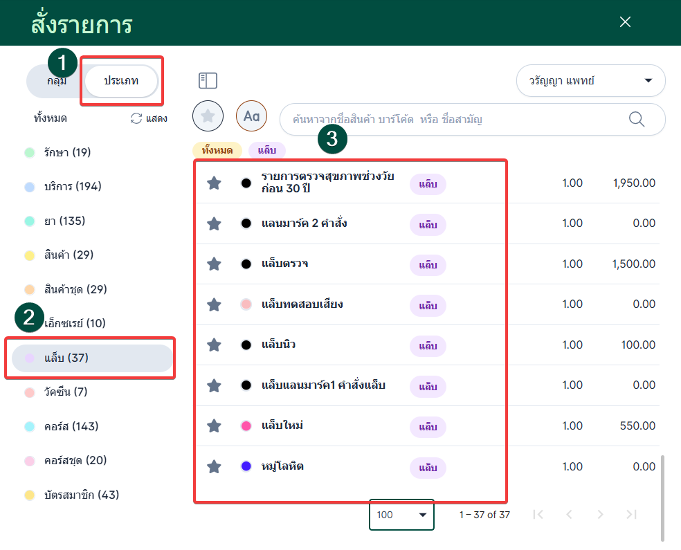 เลือกรายการตรวจแล็บที่ต้องการสั่ง