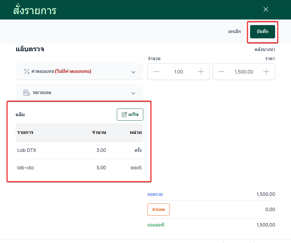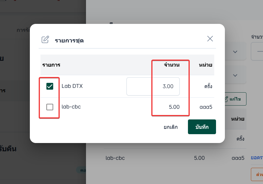ปรับข้อมูลตามต้องการ เช่น จำนวน ราคา หมายเหตุ หรืออุปกรณ์