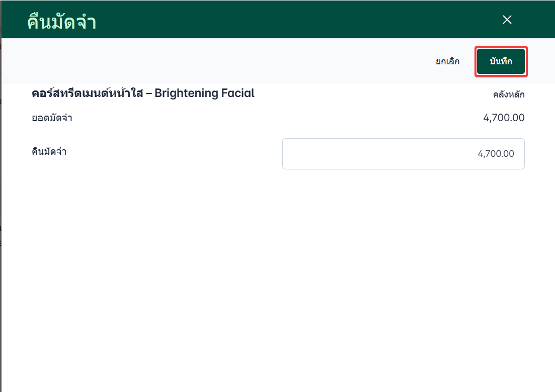 จากนั้นกดบันทึก เพื่อทำการคืนยอดมัดจำ