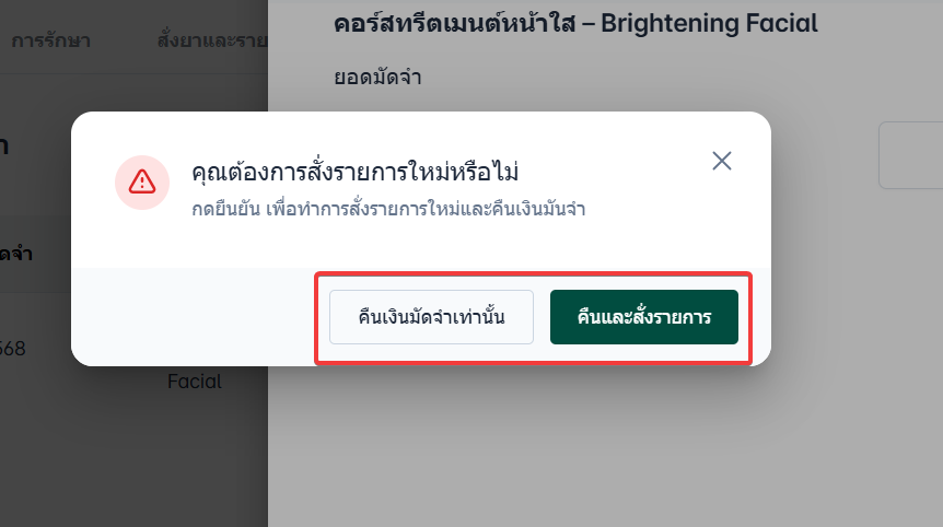 คืนเงินมัดจำเท่านั้น : ระบบจะทำการคืนมัดจำเท่านั้น