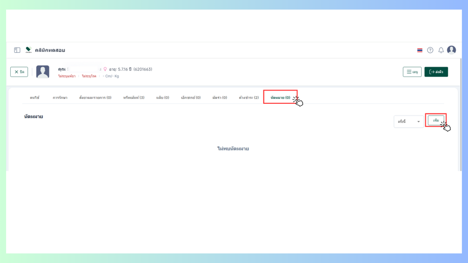 ชื่อคนไข้ จะแสดงขึ้นอัตโนมัติ