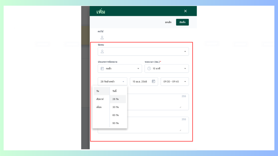 ระบบจะแสดงหน้าต่างเพิ่มหน้านัดหมายขึ้นมา