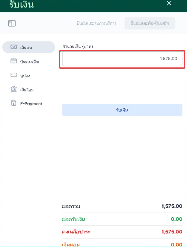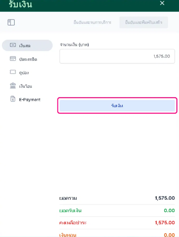 คลิกที่ปุ่ม รับเงิน ที่อยู่ด้านล่างของหน้าจอ