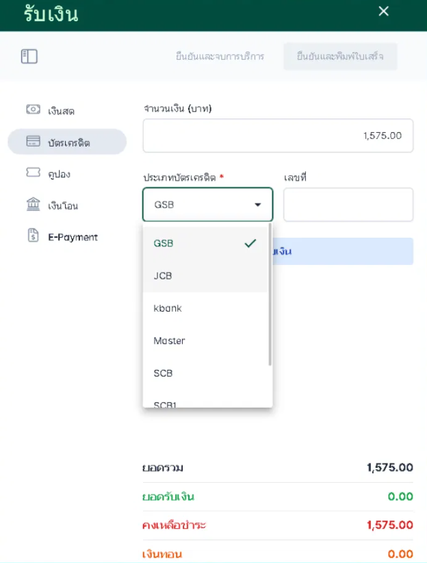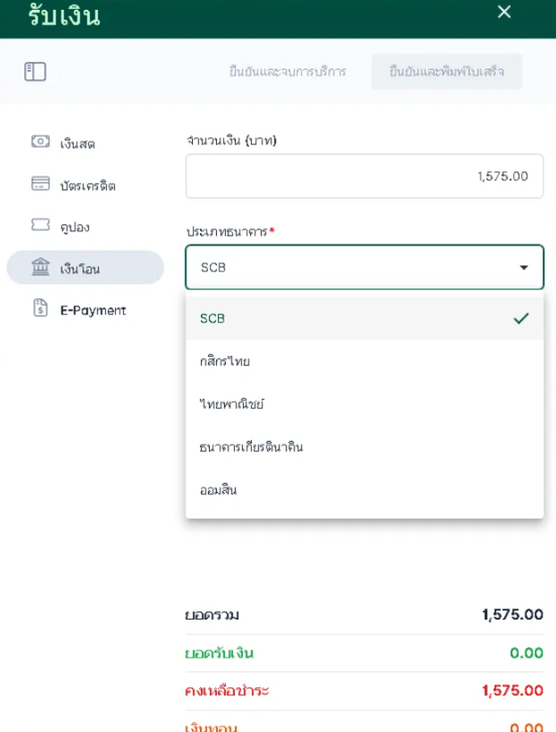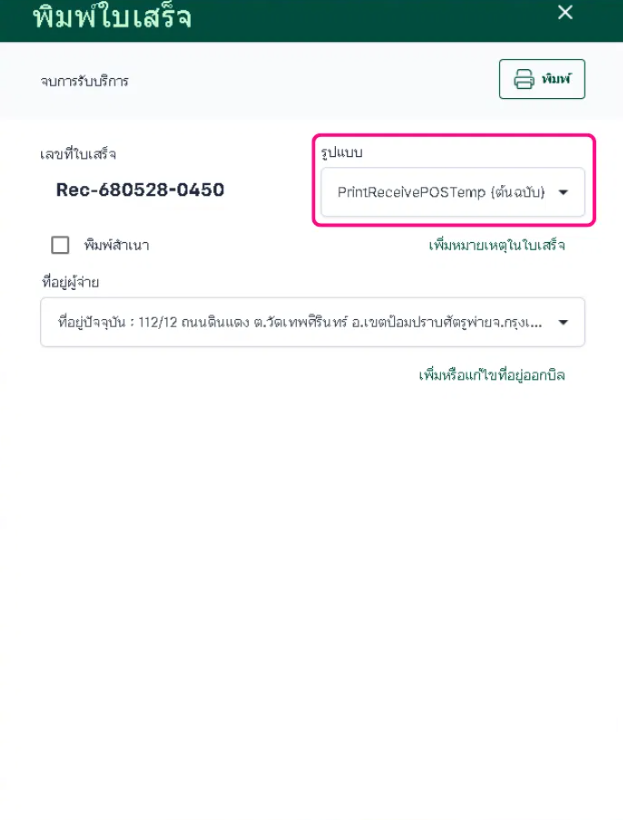 เลือกรูปแบบใบเสร็จที่ต้องการ