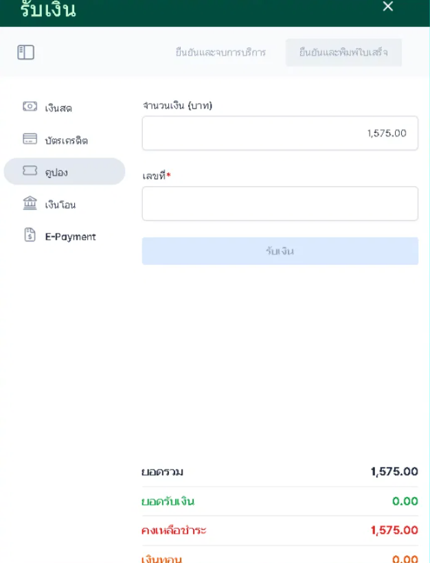 ในกรณีที่ผู้ป่วยชำระเงินด้วย คูปองหรือสมาชิก ผู้ใช้งานต้องระบุข้อมูลที่เกี่ยวข้อง ดังนี้