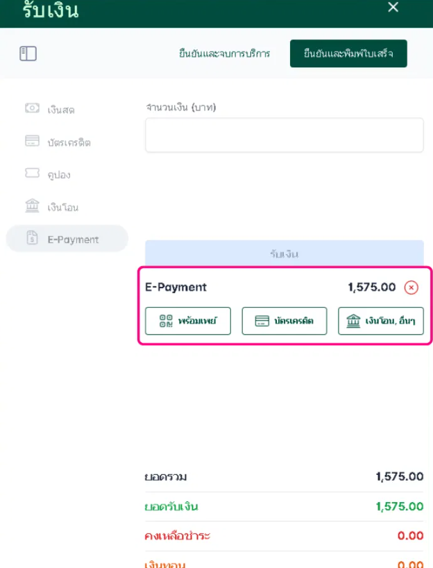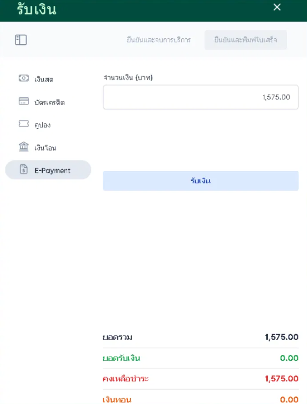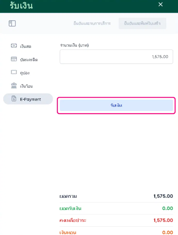 การชำระเงินผ่าน E-Payment กดที่รับเงิน