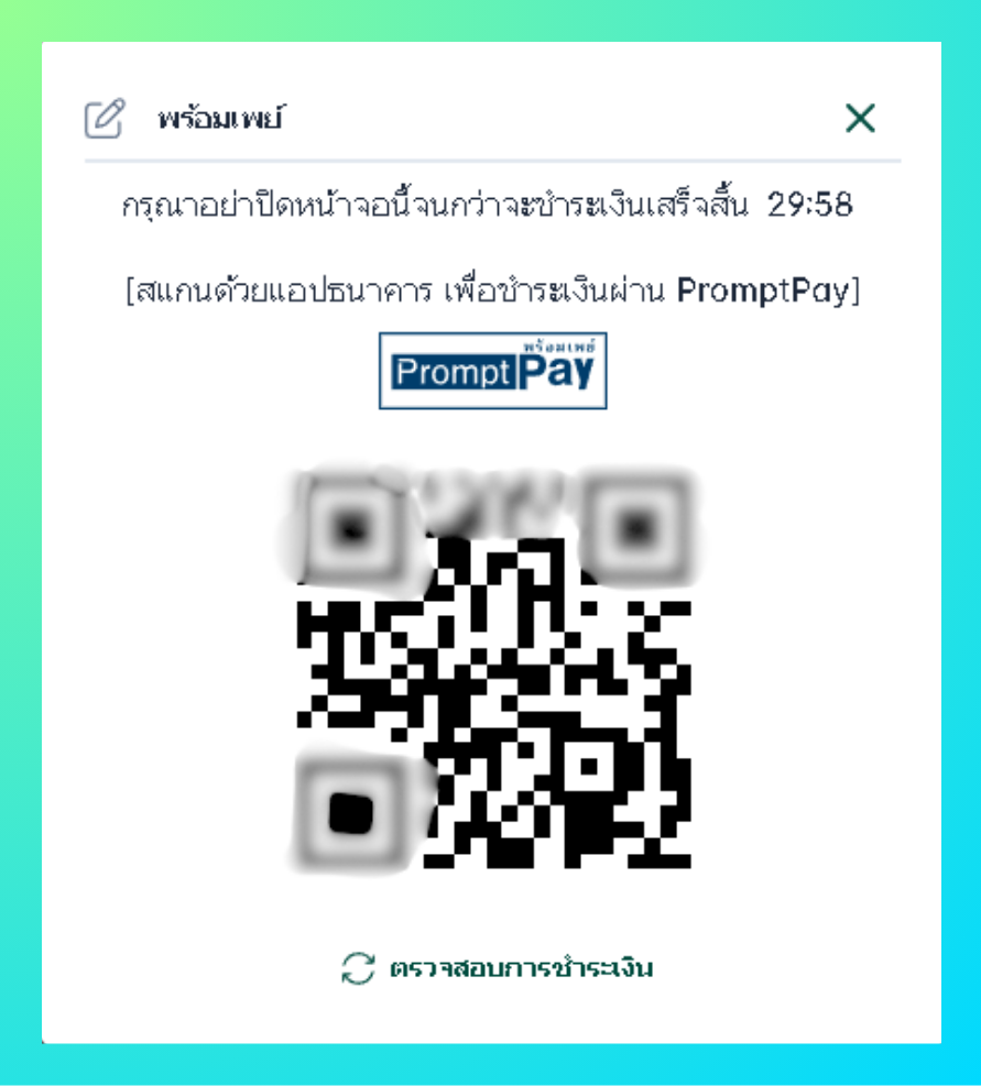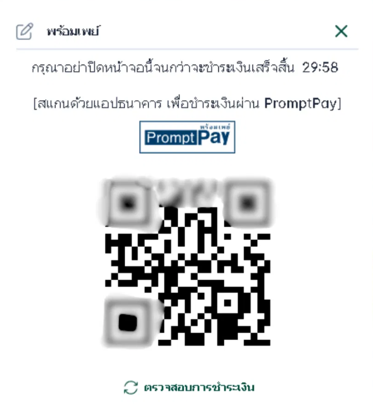 เมื่อทำการสแกน QR Code ชำระเรียบร้อยแล้วจะแสดงว่า การชำระเงินสำเร็จ