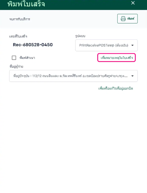 คลิก พิมพ์สำเนา หากต้องการจัดทำสำเนาใบเสร็จ