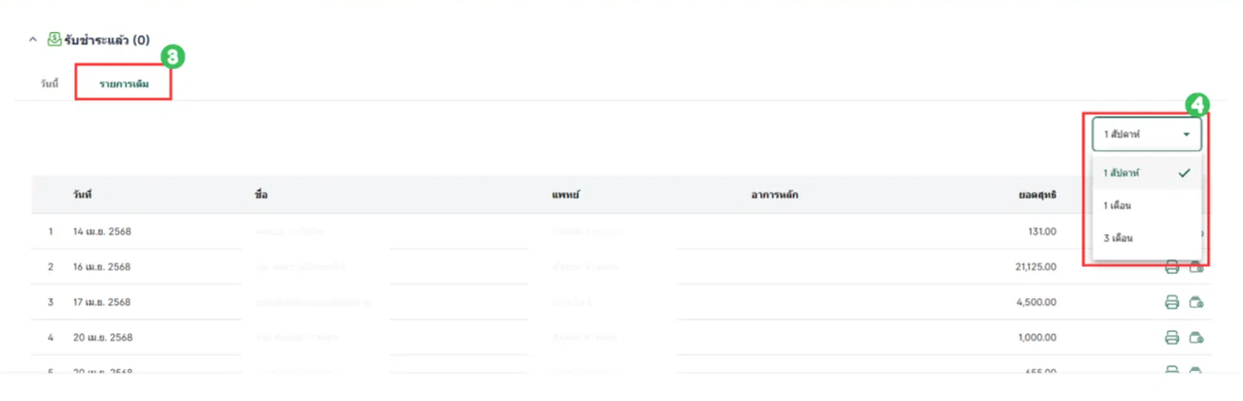 โดยคลิกที่รายการเดิม ทางขวาจะสามารถเลือกดูรายการประวัติที่รับชำระแล้ว