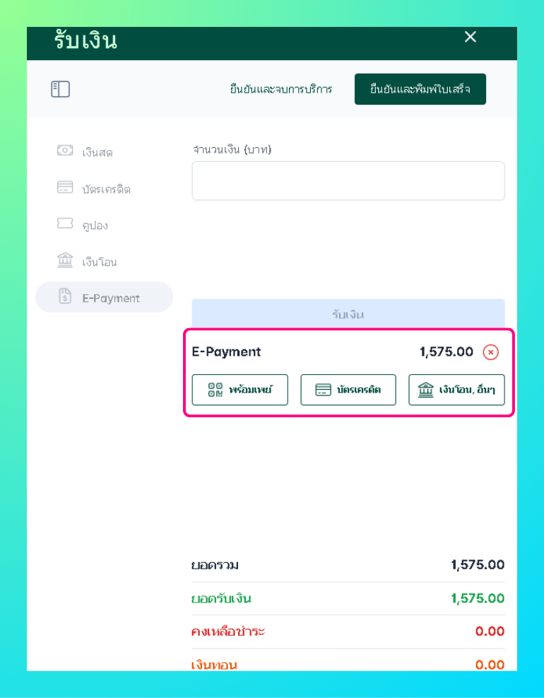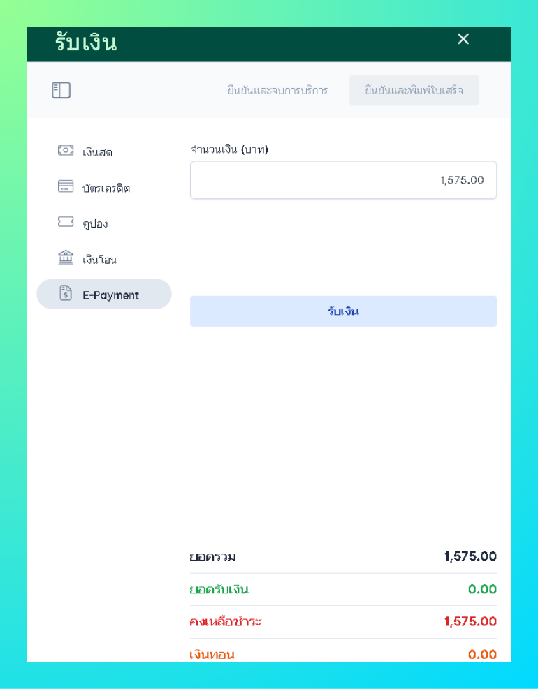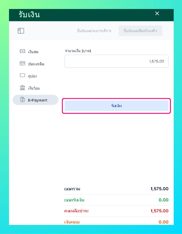 - การชำระเงินผ่าน E-Payment กดที่รับเงิน