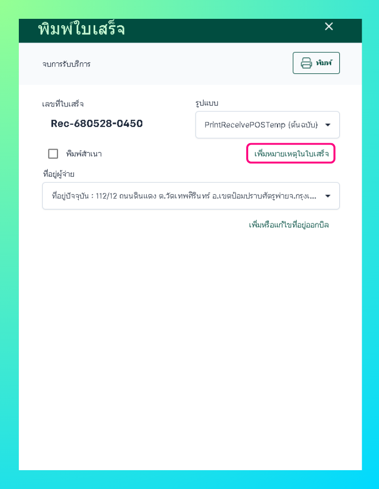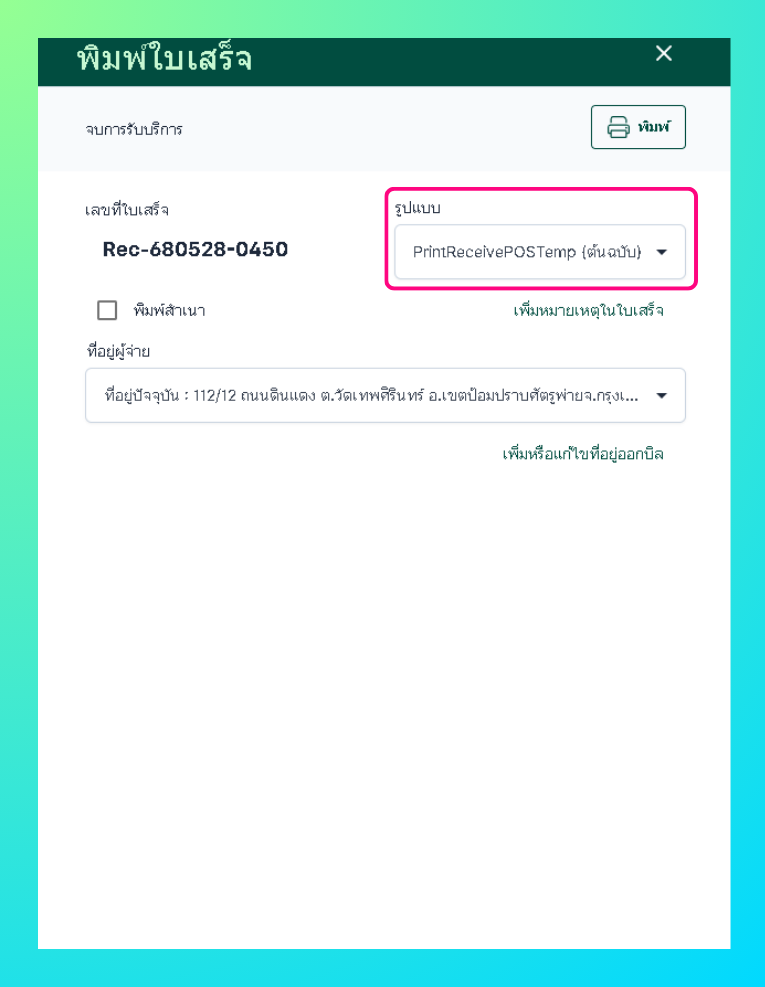 ผู้ใช้สามารถเลือกที่อยู่ผู้จ่ายที่จะทำการพิมพ์ใบเสร็จได้