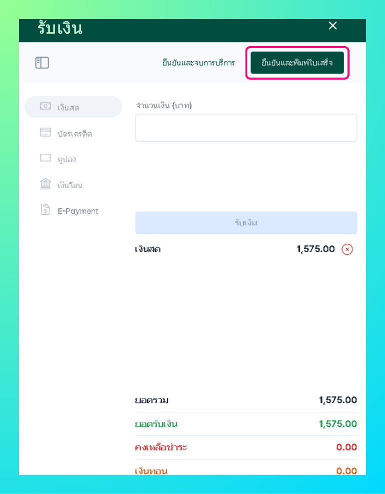 เลือกยืนยันการรับเงิน เมื่อเลือกรูปแบบการรับชำระเงิน จากลูกค้าเรียบร้อยแล้ว