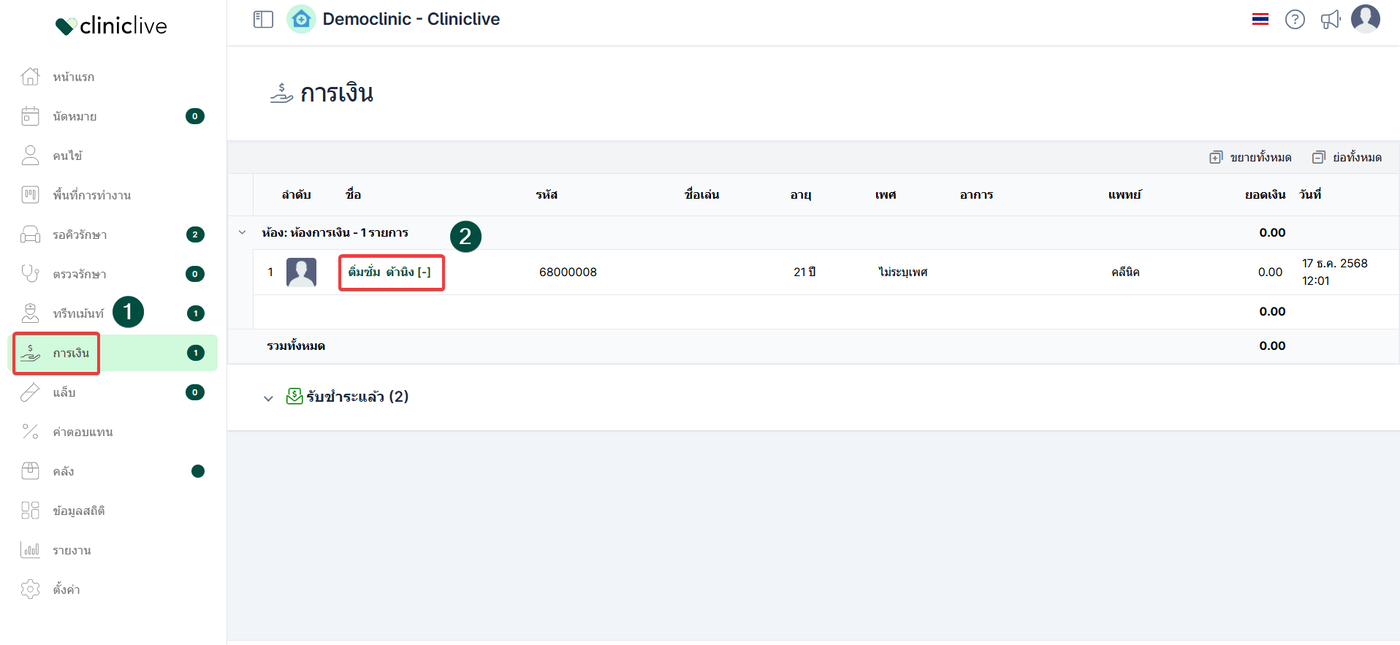 เลือก คนไข้ ที่ต้องการทำรายการรับคืนสินค้า