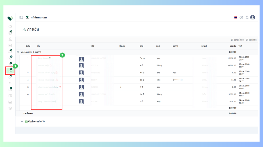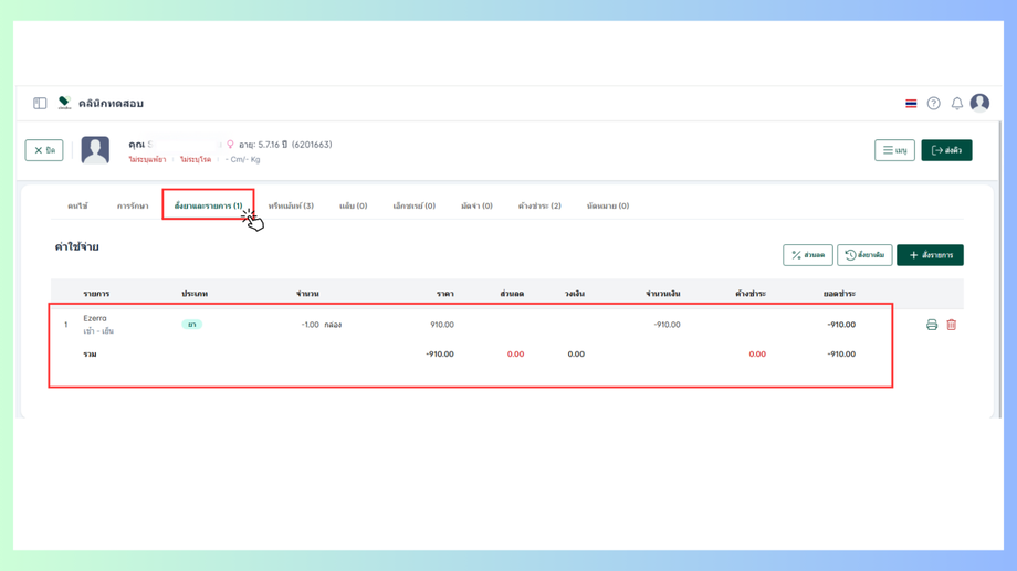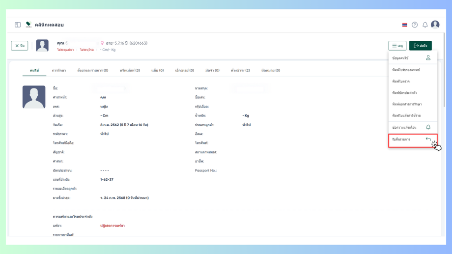 ผู้ใช้งานจะเข้าสูข้อมูลคนไข้ คลิกที่ไอคอน3ขีด แล้วเลือกที่รับคืนรายการ
