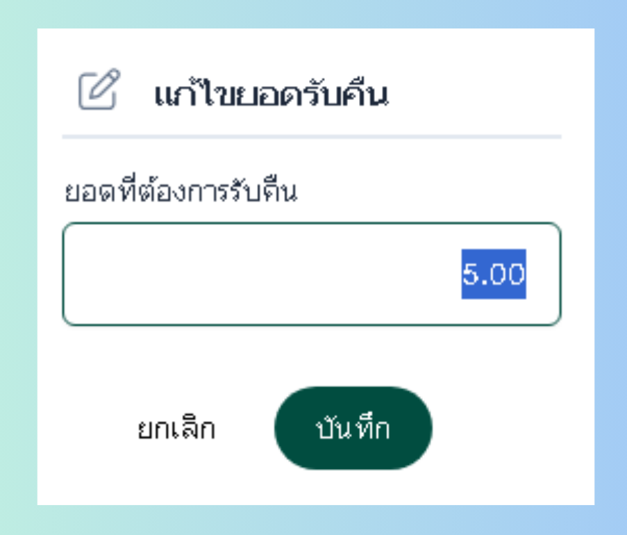 หน้าระบุยอดที่ต้องการรับคืน