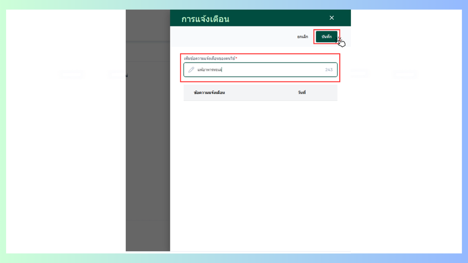 การเพิ่มข้อความแจ้งเตือน