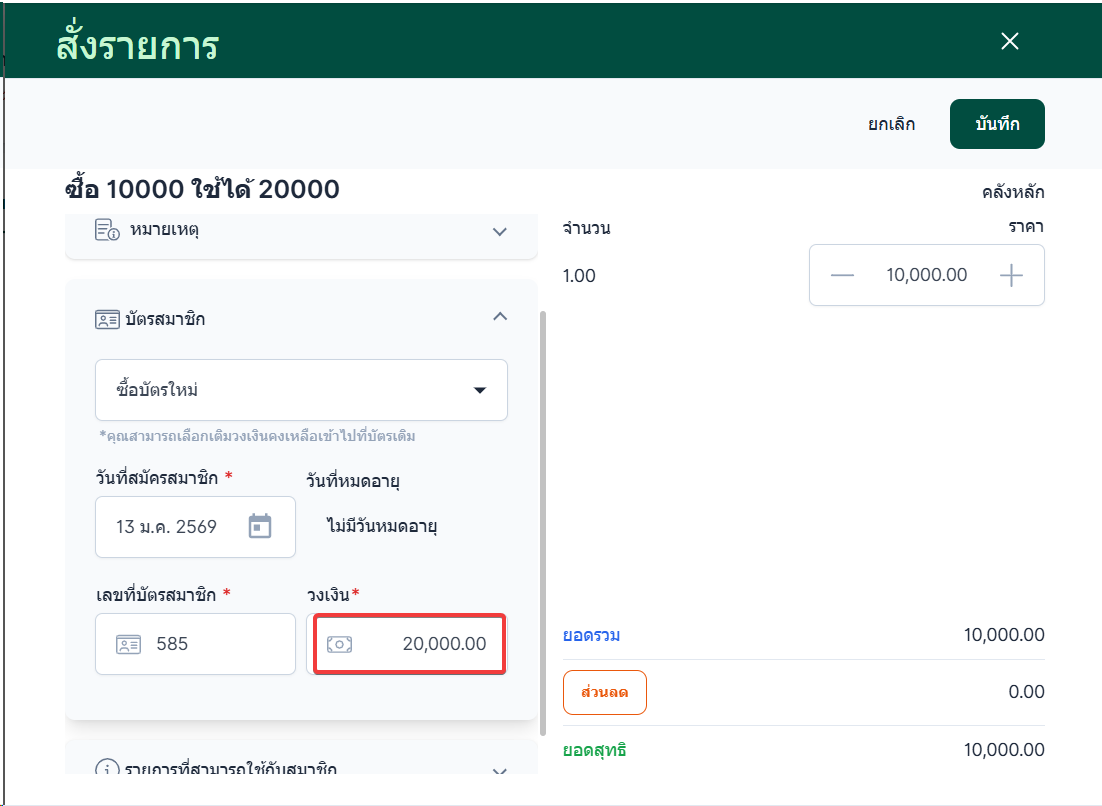 การเพิ่มมูลค่าวงเงินให้กับบัตรสมาชิกของผู้รับบริการ เพื่อใช้เป็นสิทธิ์ส่วนลดหรือใช้ชำระค่าใช้จ่ายในการเข้ารับบริการตามเงื่อนไขที่กำหนดไว้ในระบบการเพิ่มวงเงินสมาชิกช่วยให้ผู้รับบริการสามารถใช้วงเงินที่มีอยู่แทนการชำระเงินสดบางส่วนหรือทั้งหมด