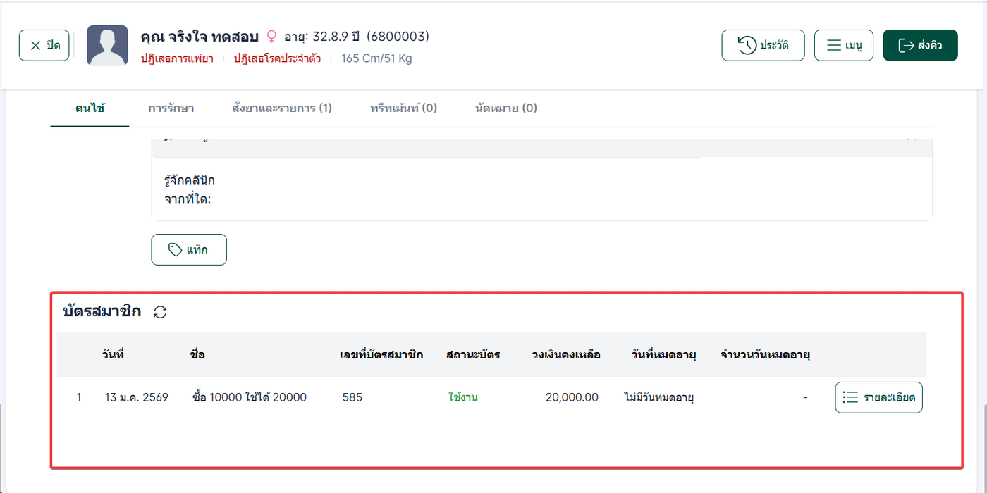 ข้อมูลบัตรสมาชิกจะแสดงข้างล่างสุด