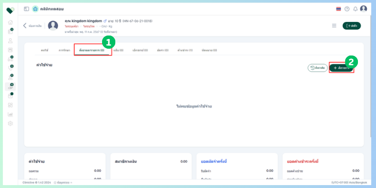 สามารถตรวจสอบวงเงินคงเหลือของคนไข้ได้ที่แท็บคนไข้