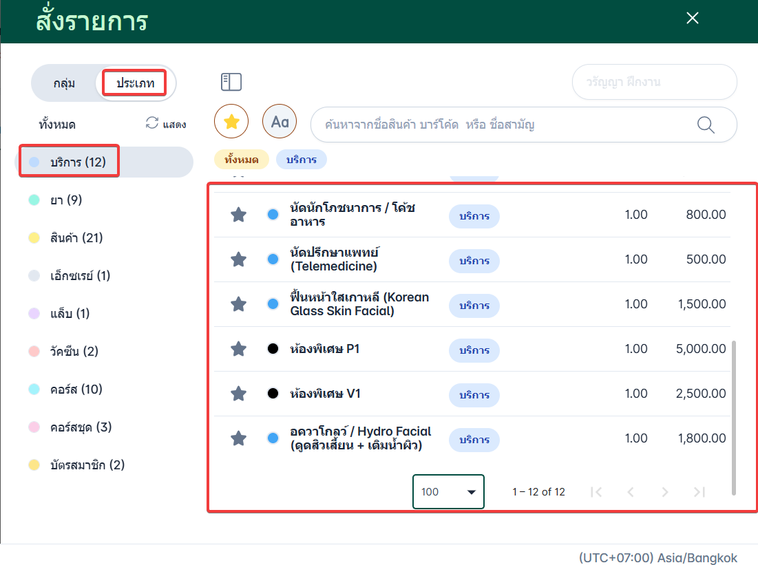 เลือกประเภท บริการ แล้วเลือกรายการบริการที่ต้องการสั่ง