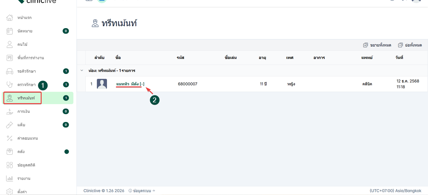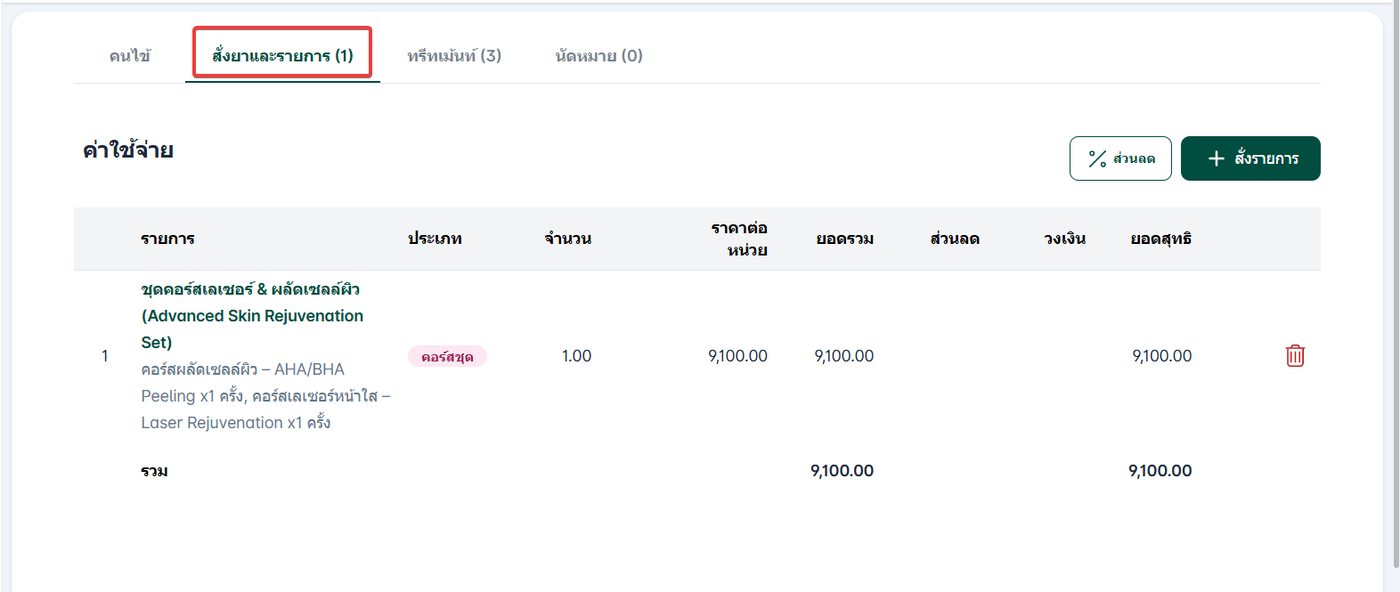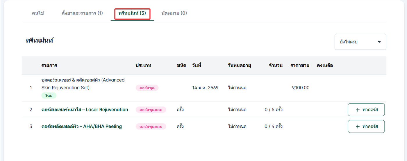 ในส่วนของแท็บทรีทเม้นท์จะแสดงรายละเอียดของคอร์สชุด