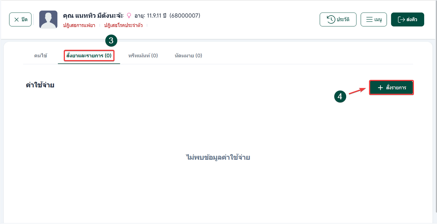 คลิกที่ชื่อคนไข้ที่ต้องการสั่งรายการ