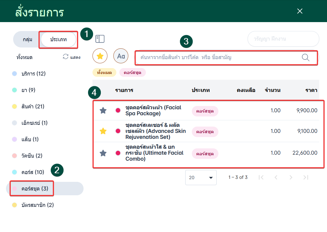 คือรายการคอร์สที่ถูกรวมหลายบริการหรือหลายรายการไว้ในชุดเดียว โดยผู้รับบริการสามารถใช้บริการภายในคอร์สชุดนั้นได้ตามจำนวนครั้งหรือเงื่อนไขที่กำหนดไว้