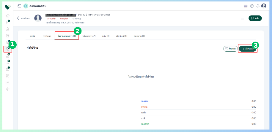 เข้าที่หน้าทรีทเม้นท์ > สั่งยาและรายการ > สั่งรายการ