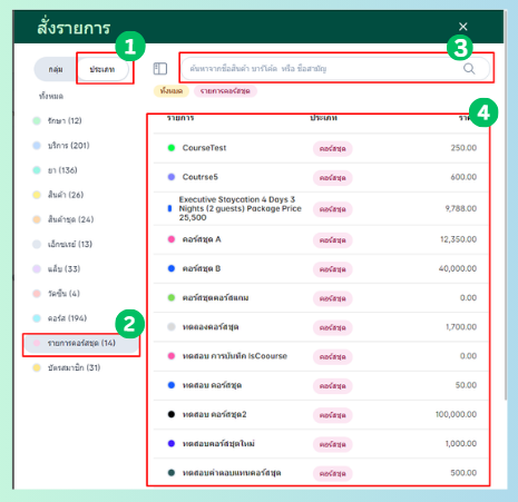 2.เลือกประเภท > รายการคอร์สชุด > ค้นหาชื่อรายการหรือเลือกจากรายการที่แสดงขึ้นมา