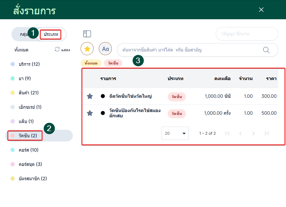 เลือกรายการวัคฉีนที่ต้องการสั่ง