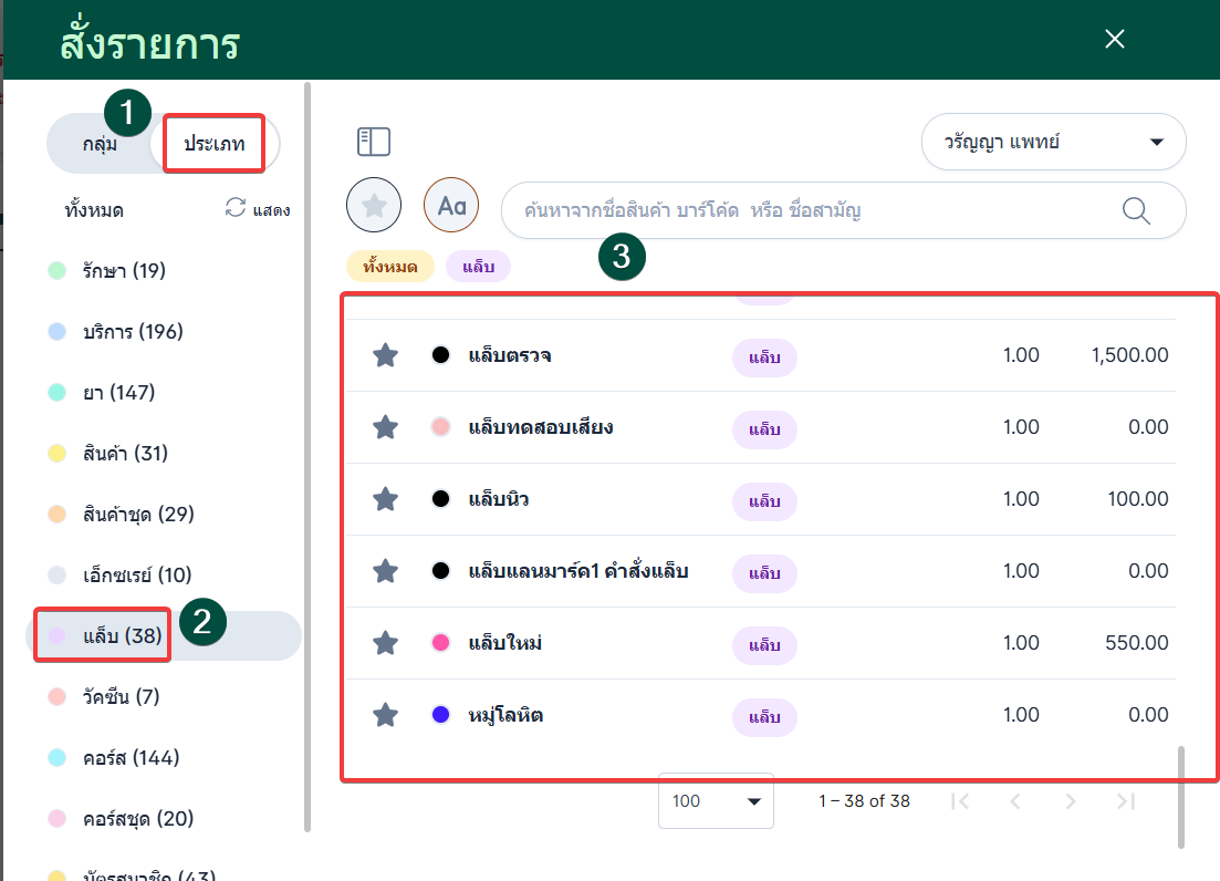 หลังจากผู้ใช้งานกดบันทึกสั่งรายการแล้ว ระบบจะแสดงรายการในหน้าแล็บและค่าใช้จ่าย