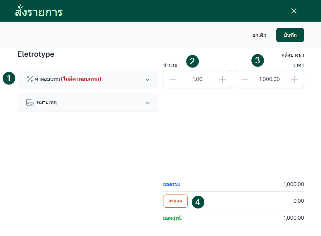 ส่วนลด หากผู้ใช้งานมีสิทธิ์ในการให้ส่วนลด