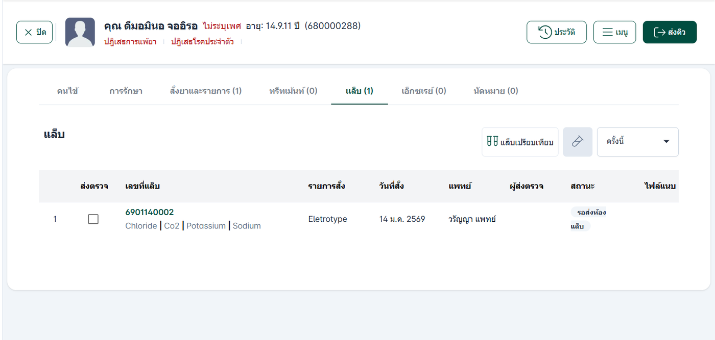 รองรับการบันทึกผลแล็บ การแนบไฟล์ผลตรวจ และการพิมพ์ใบผลแล็บ