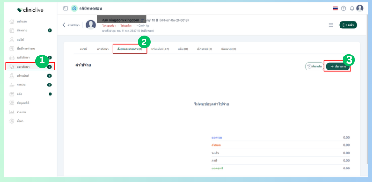 1.เลือกแท็บตรวจรักษา > สั่งยาและรายการ > สั่งรายการ