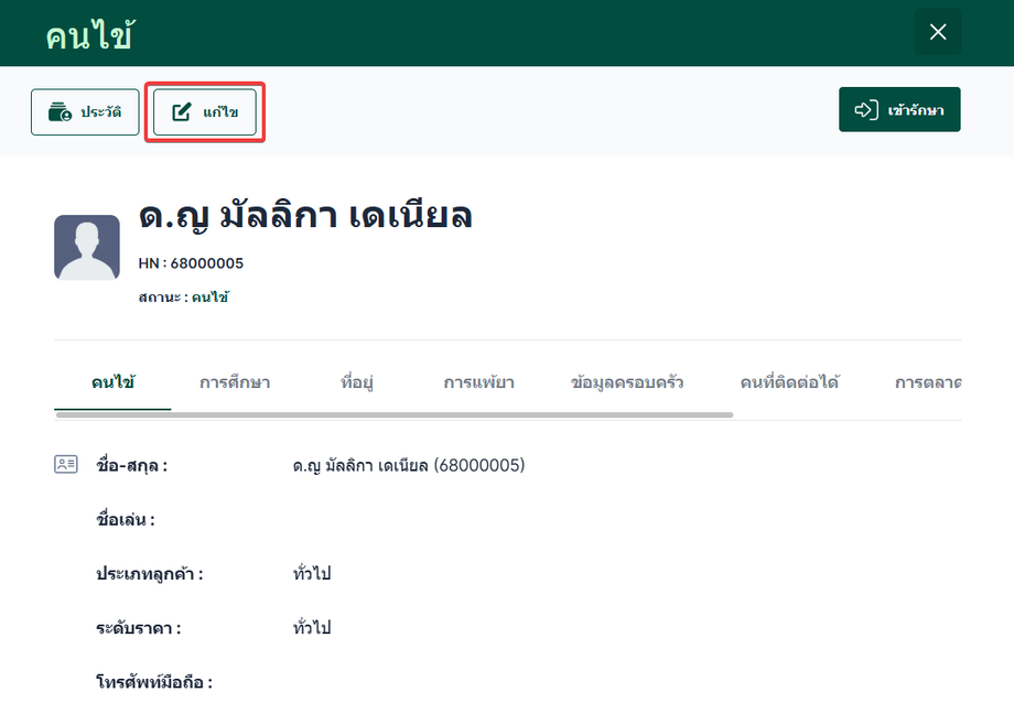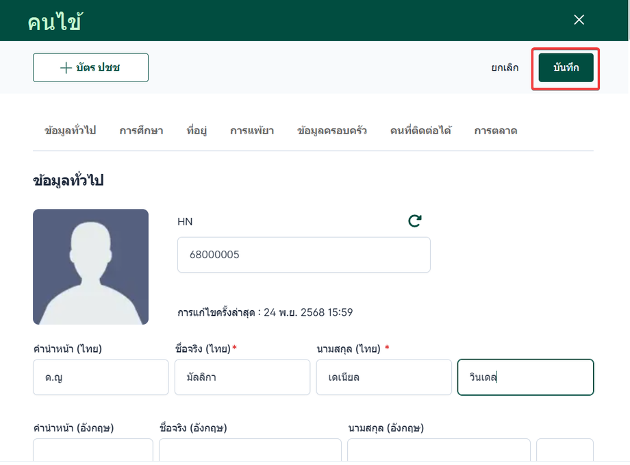 การเพิ่มและแก้ไขข้อมูลคนไข้