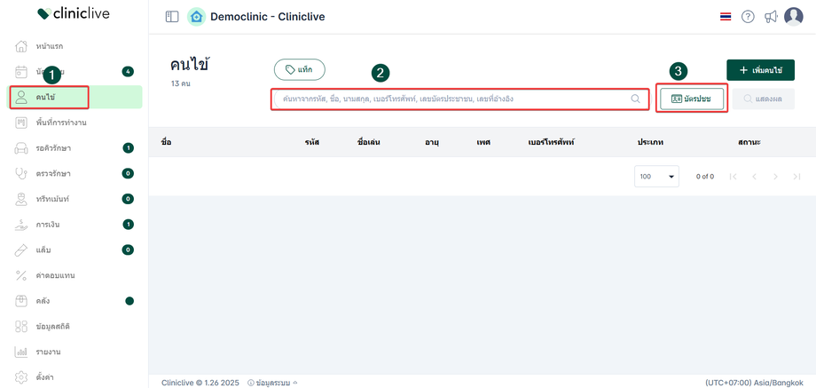 จากนั้น พิมพ์ค้นหา ชื่อ,รหัส,เบอร์โทร ที่ต้องการแก้ไขข้อมูล
