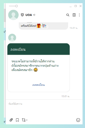 ให้พิมพ์ข้อความ “ #เมนู “ หากต้องการลงทะเบียน