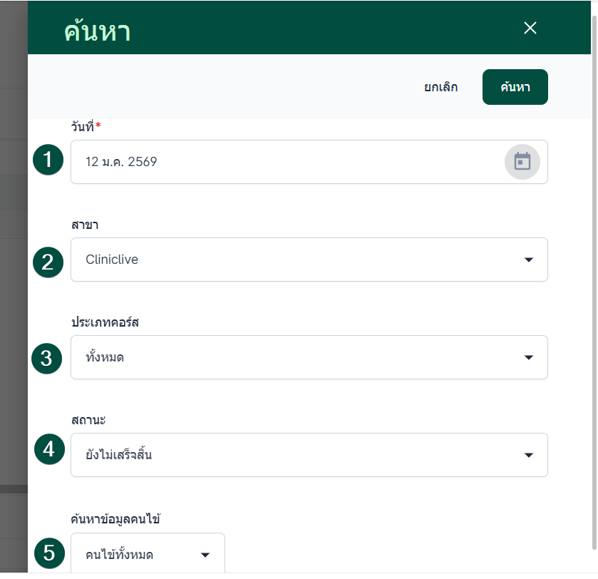 เมื่อกำหนดเงื่อนไขครบถ้วนแล้ว ผู้ใช้งานสามารถคลิก ค้นหา เพื่อแสดงผลรายงานตามข้อมูลที่เลือกไว้