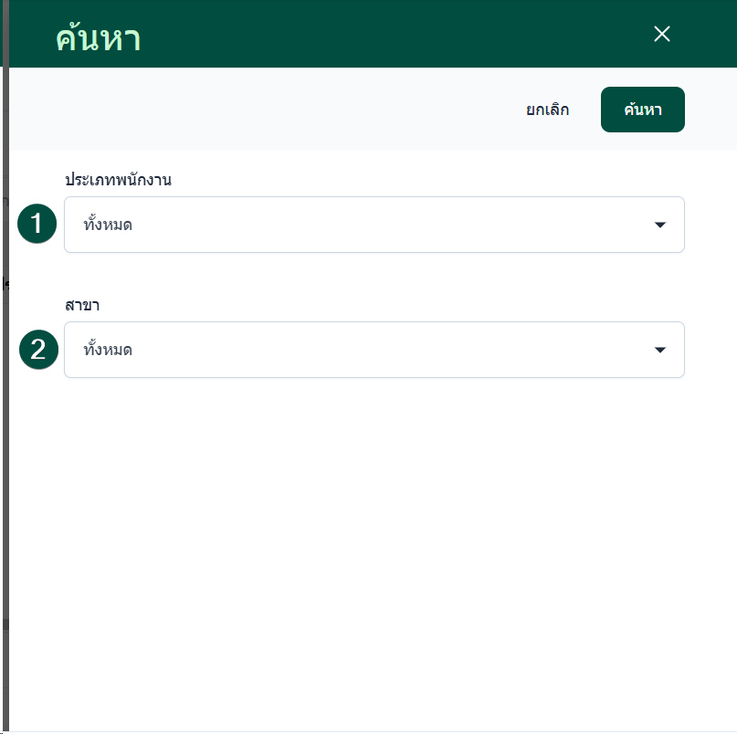 เมื่อกำหนดเงื่อนไขครบถ้วนแล้ว ผู้ใช้งานสามารถคลิก ค้นหา เพื่อแสดงผลรายงานตามข้อมูลที่เลือกไว้