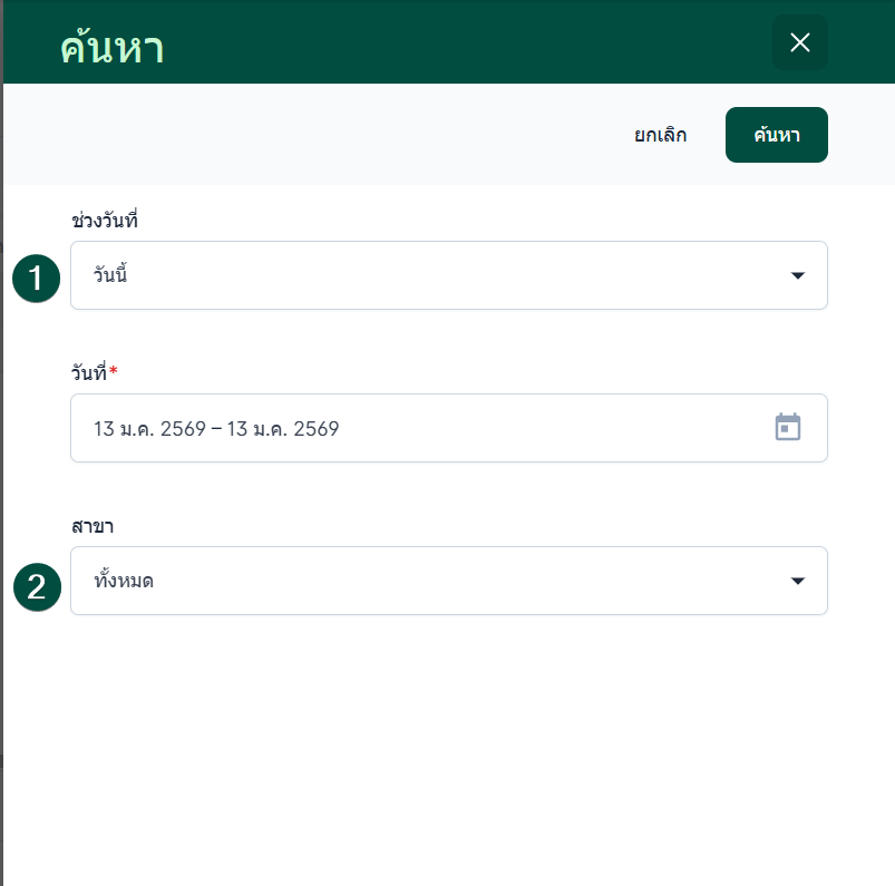เลือกวันที่ ผู้ใช้งานสามารถเลือกช่วงวันที่ได้หลายรูปแบบ เช่น