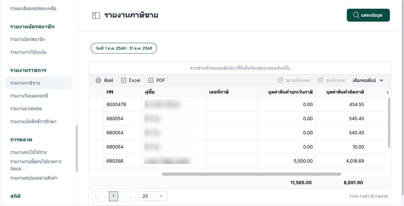 เมื่อกำหนดเงื่อนไขครบถ้วนแล้ว ผู้ใช้งานสามารถคลิก ค้นหา เพื่อแสดงผลรายงานตามข้อมูลที่เลือกไว้