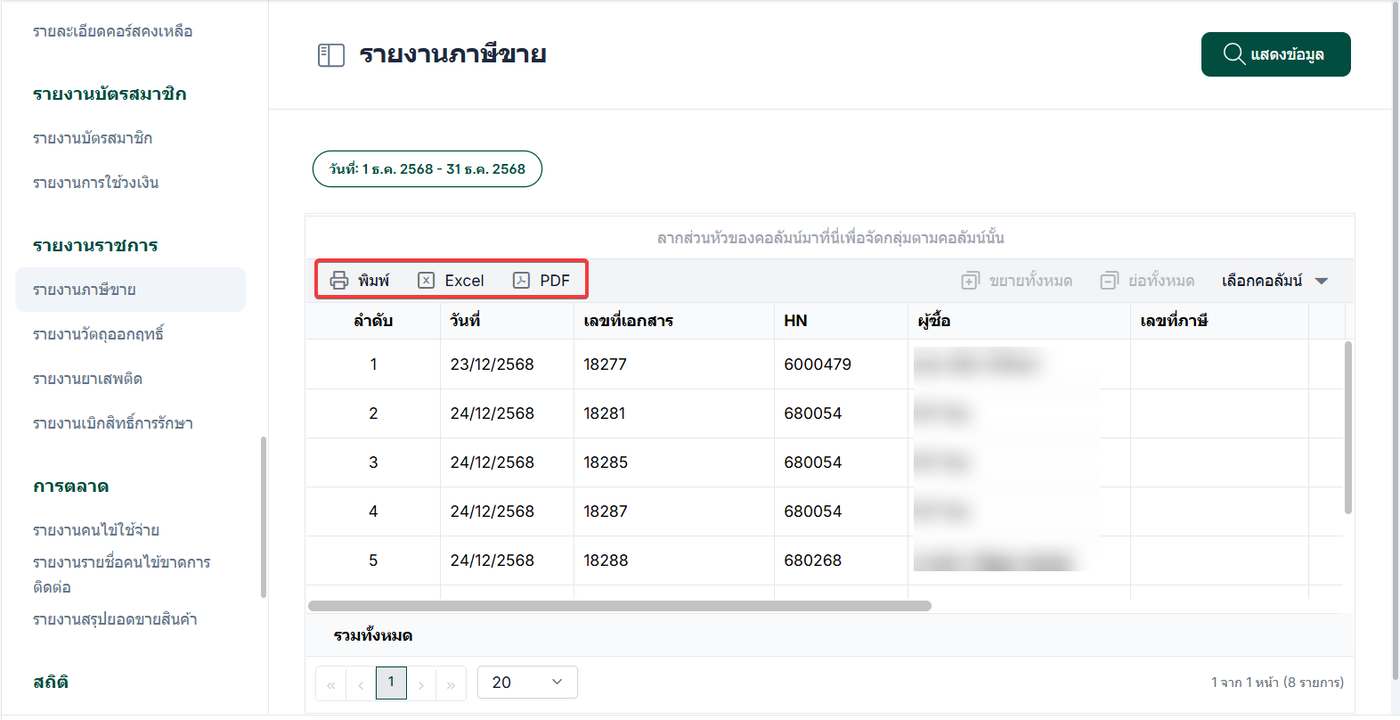 เมื่อระบบแสดงรายงานรายละเอียดจะประกอบด้วยข้อมูลดังต่อไปนี้