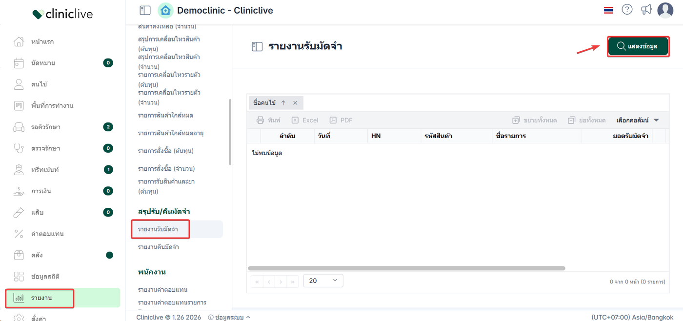 เลือก รายงานรับมัดจำ
