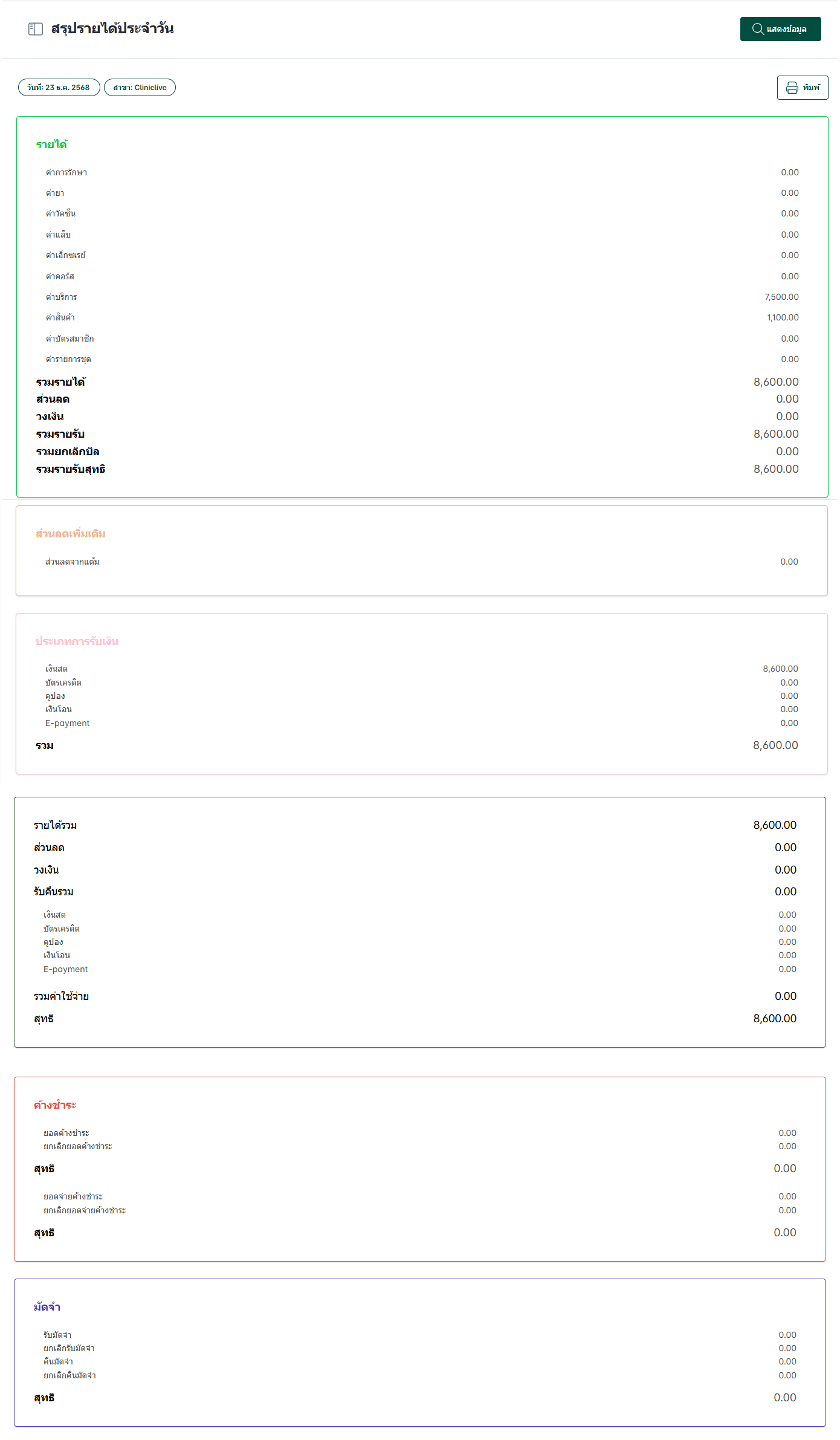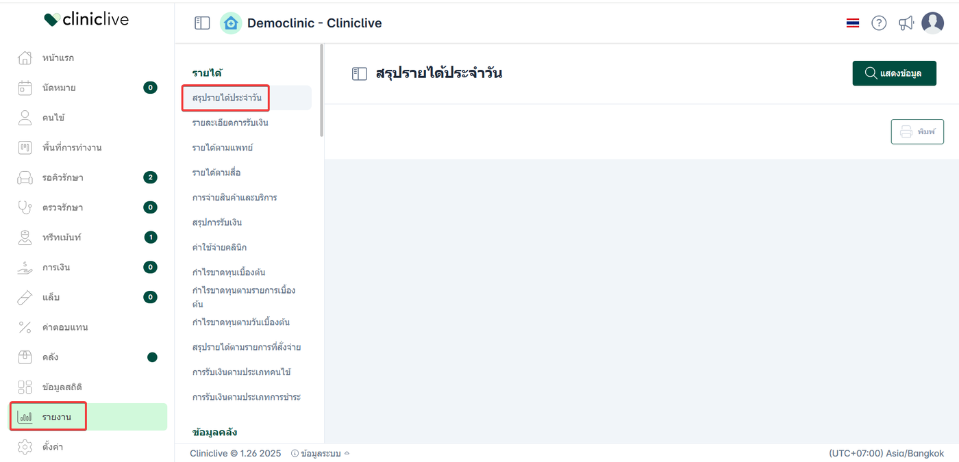 เลือก สรุปรายได้ประจำวัน