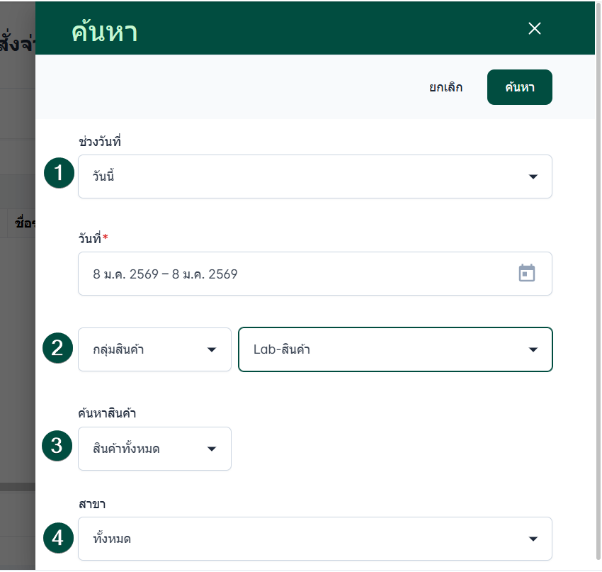 เมื่อกำหนดเงื่อนไขครบถ้วนแล้ว ผู้ใช้งานสามารถคลิก ค้นหา เพื่อแสดงผลรายงานตามข้อมูลที่เลือกไว้