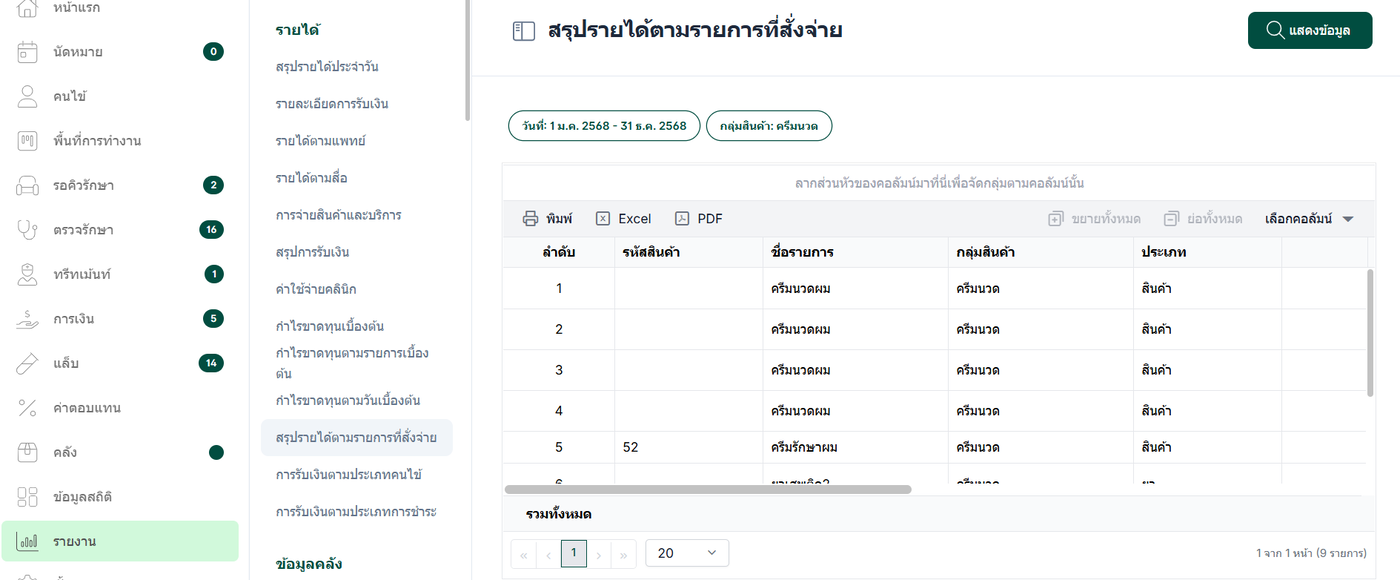 สรุปรายได้ตามรายการที่สั่งจ่าย หมายถึงรายงานที่ใช้สรุปข้อมูลรายได้จากการสั่งจ่ายสินค้าและบริการ โดยแสดงรายละเอียดของแต่ละรายการที่มีการสั่งจ่ายออกมาในรูปแบบรายงาน เพื่อให้สามารถตรวจสอบและวิเคราะห์รายได้ได้อย่างเป็นระบบเลือกช่วงวันที่ วันที่