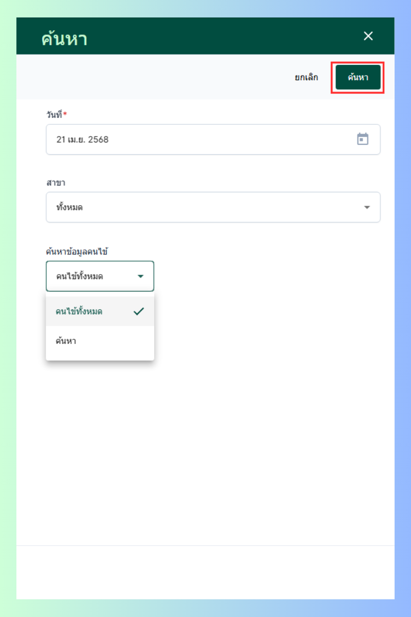 - ค้นหาข้อมูลคนไข้ สามารถค้นหาชื่อคนไข้ได้