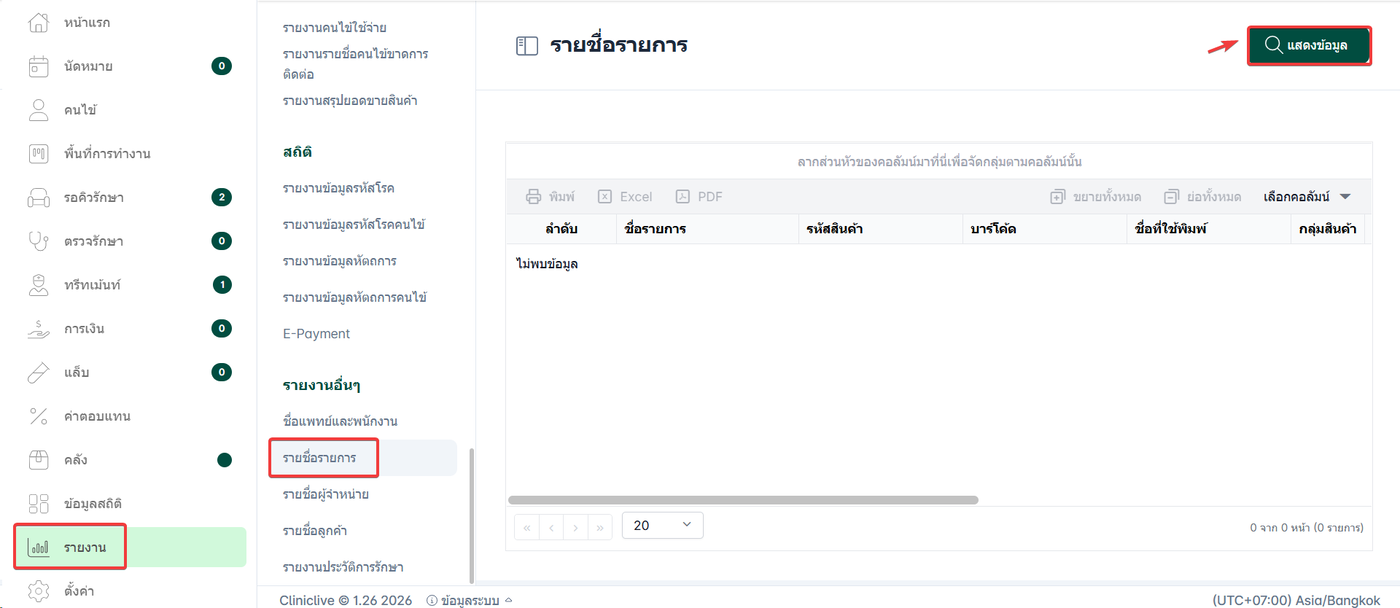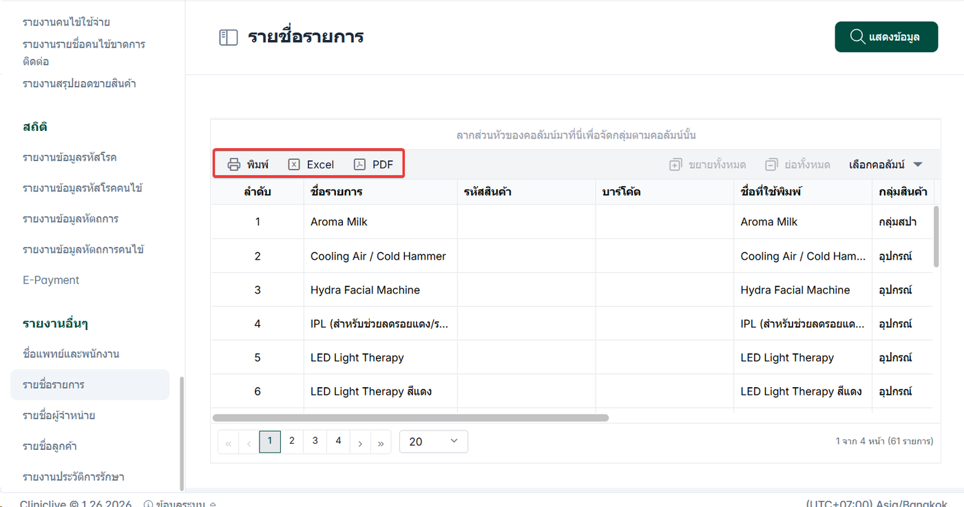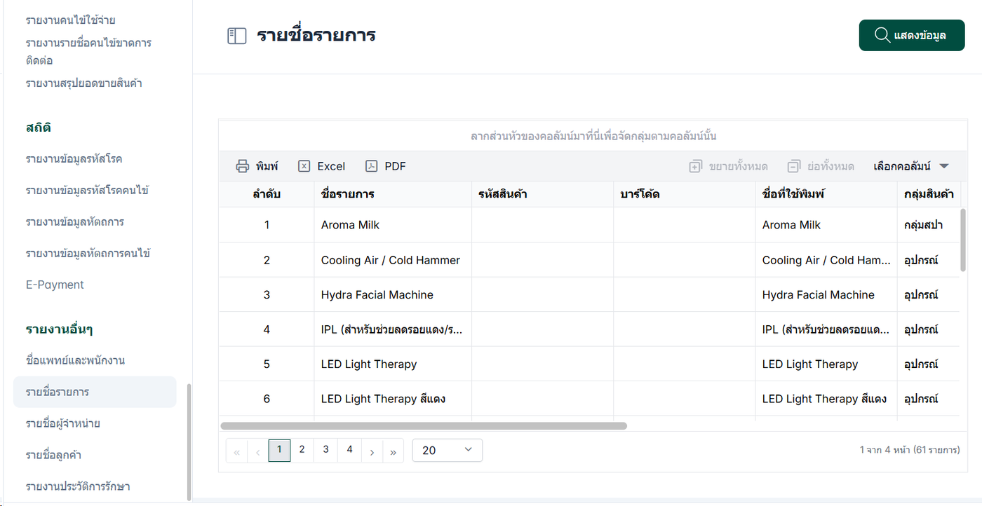 รายงานนี้ช่วยให้ผู้ดูแลระบบหรือเจ้าหน้าที่สามารถตรวจสอบและจัดการข้อมูลรายการยา, สินค้า, และบริการที่คลินิกมีได้อย่างมีประสิทธิภาพ