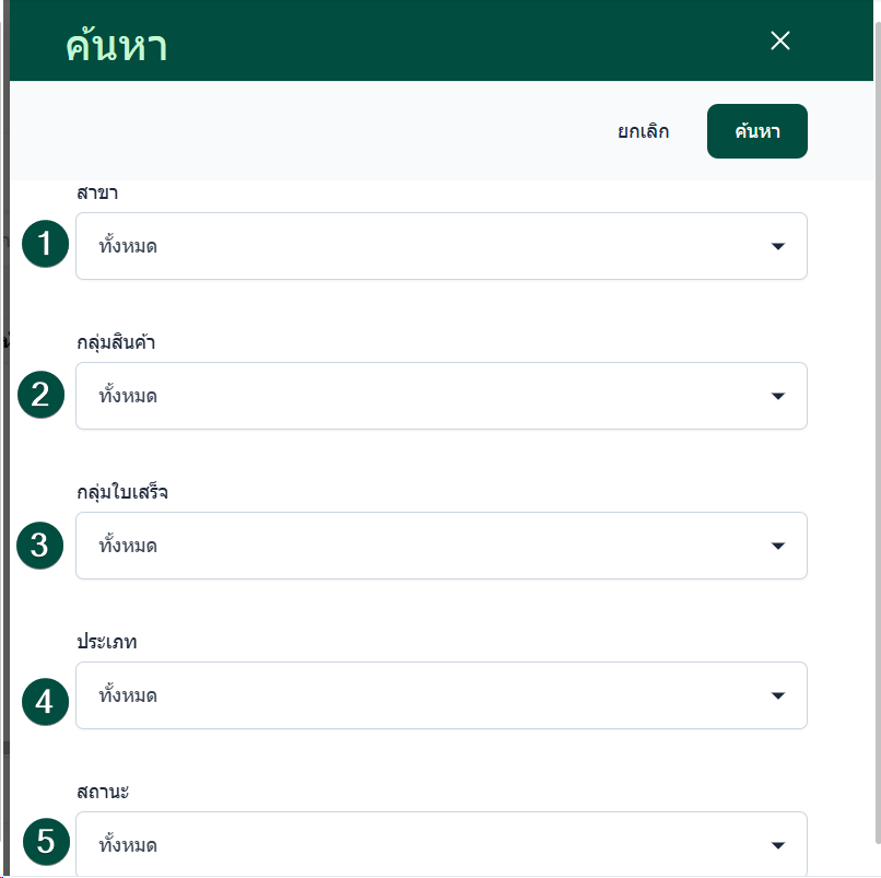 เมื่อกำหนดเงื่อนไขครบถ้วนแล้ว ผู้ใช้งานสามารถคลิก ค้นหา เพื่อแสดงผลรายงานตามข้อมูลที่เลือกไว้