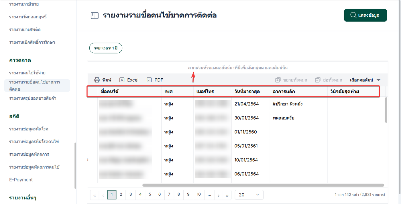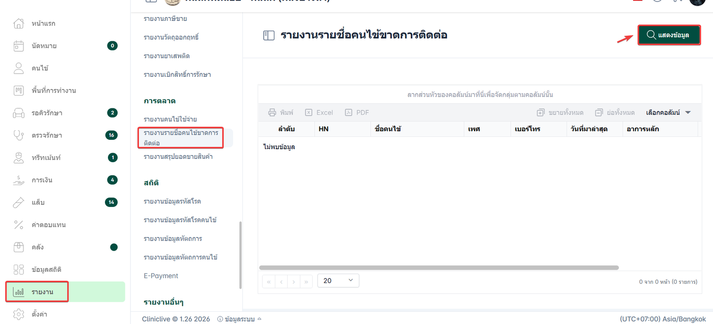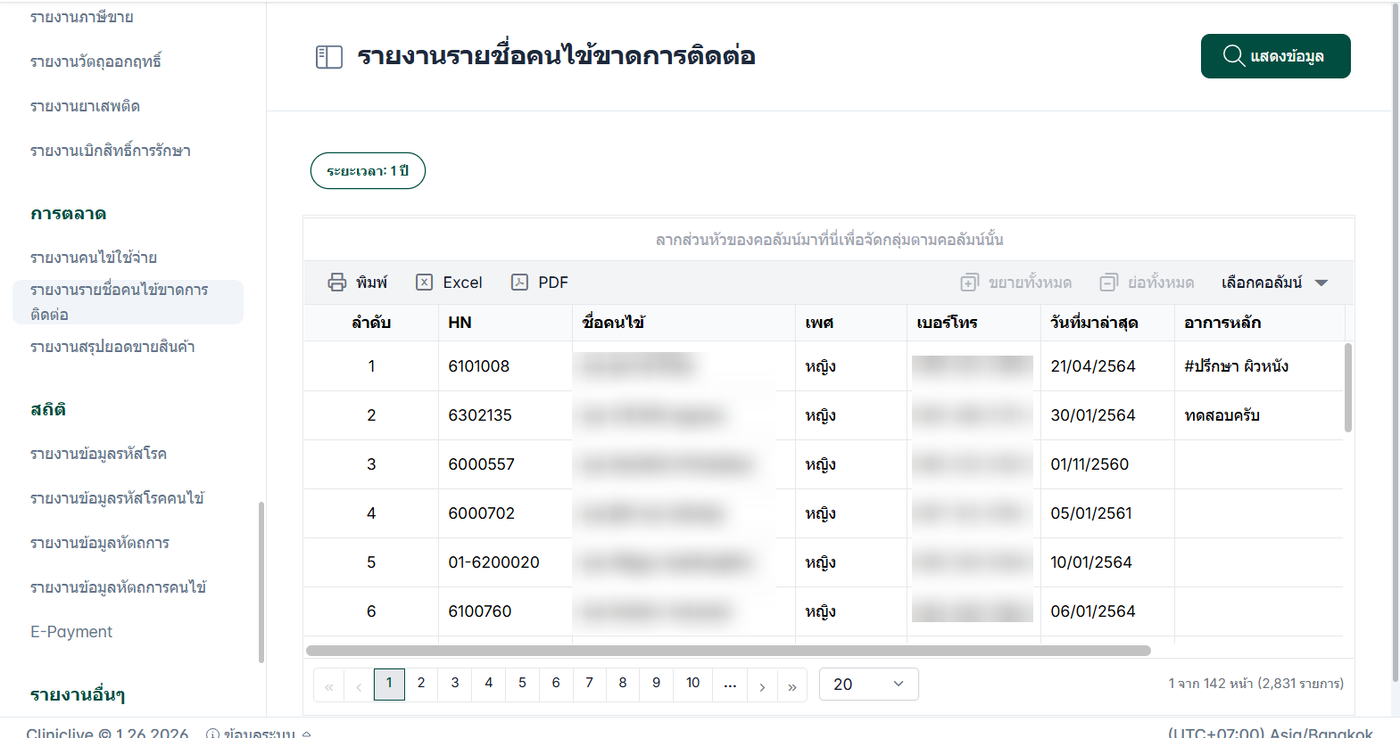 ตรวจสอบรายชื่อคนไข้ที่ขาดการติดต่อ
